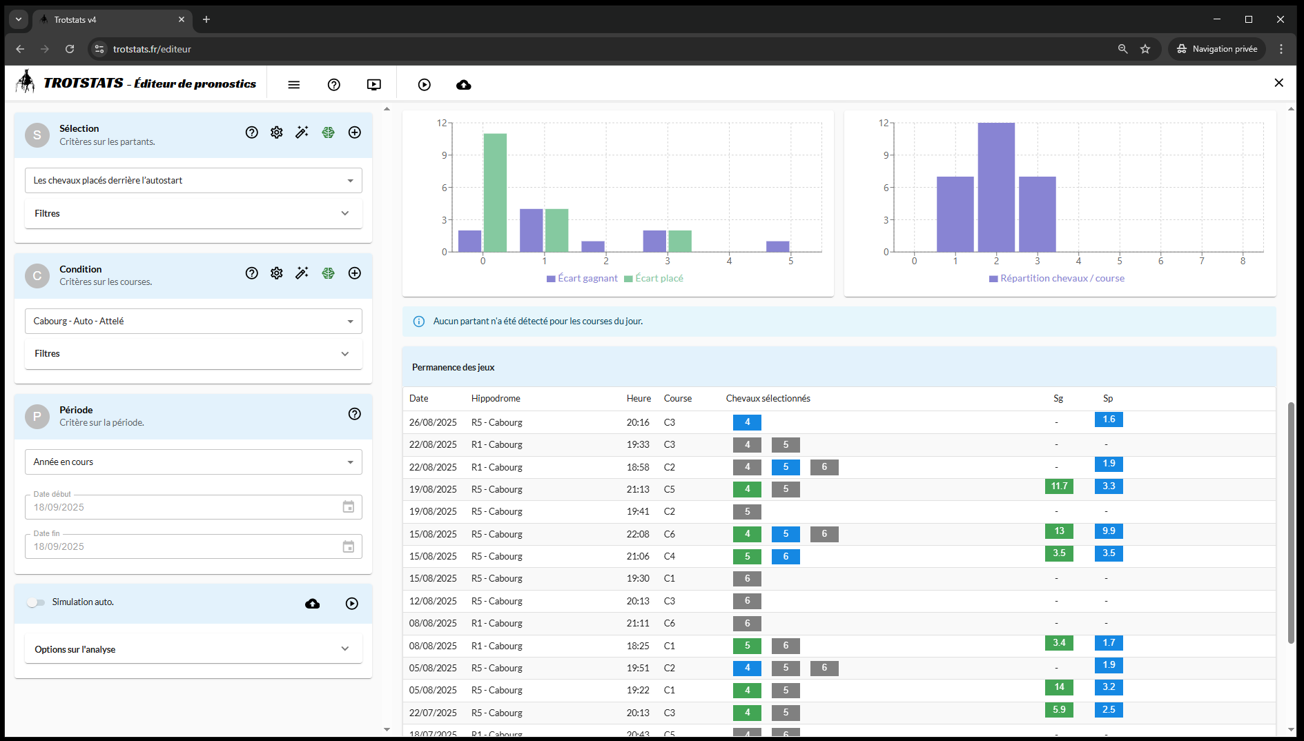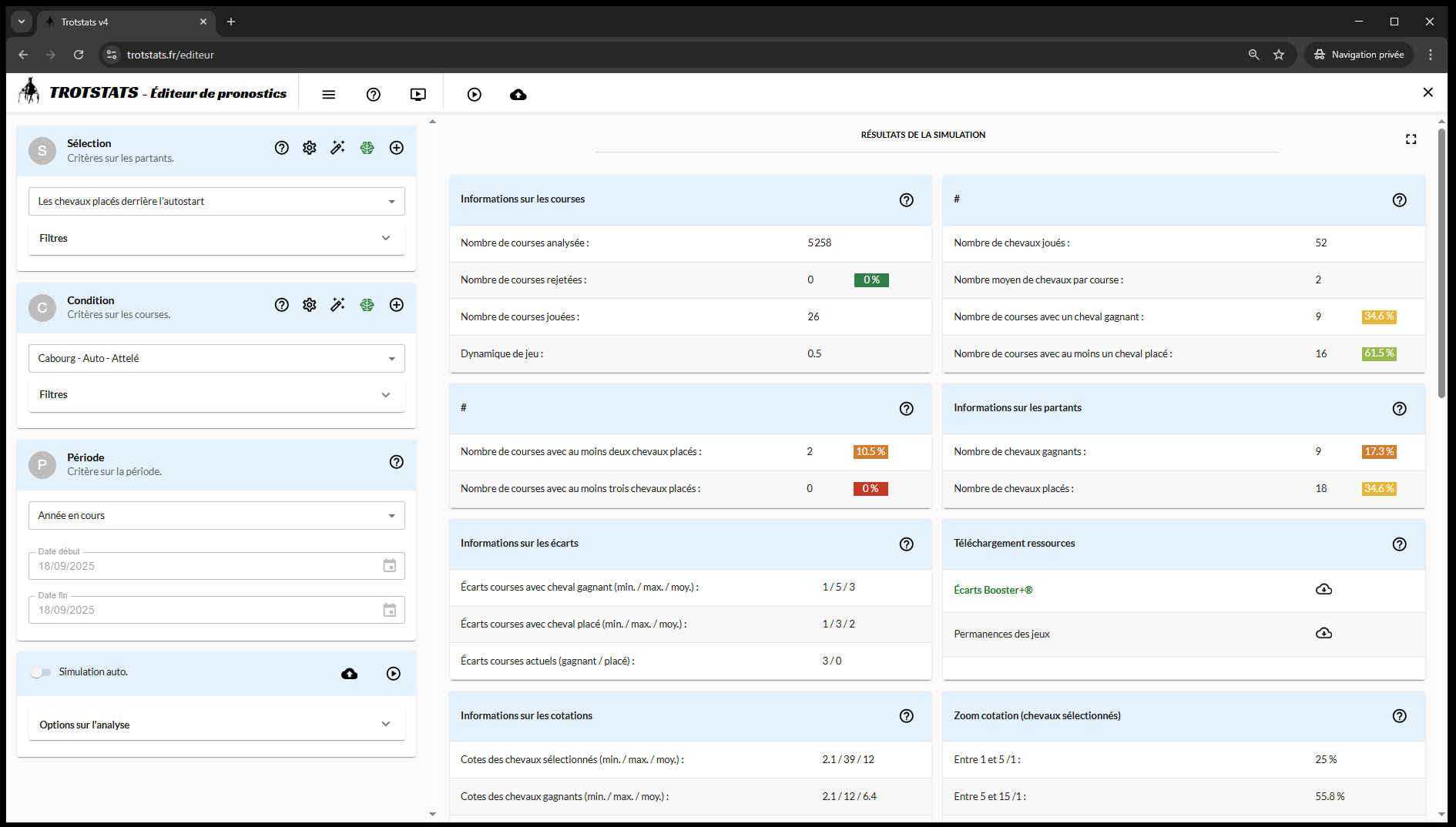 Testez vos intuitions sur les courses passées, y compris le quinté et obtenez un bilan de performance et financier complet.