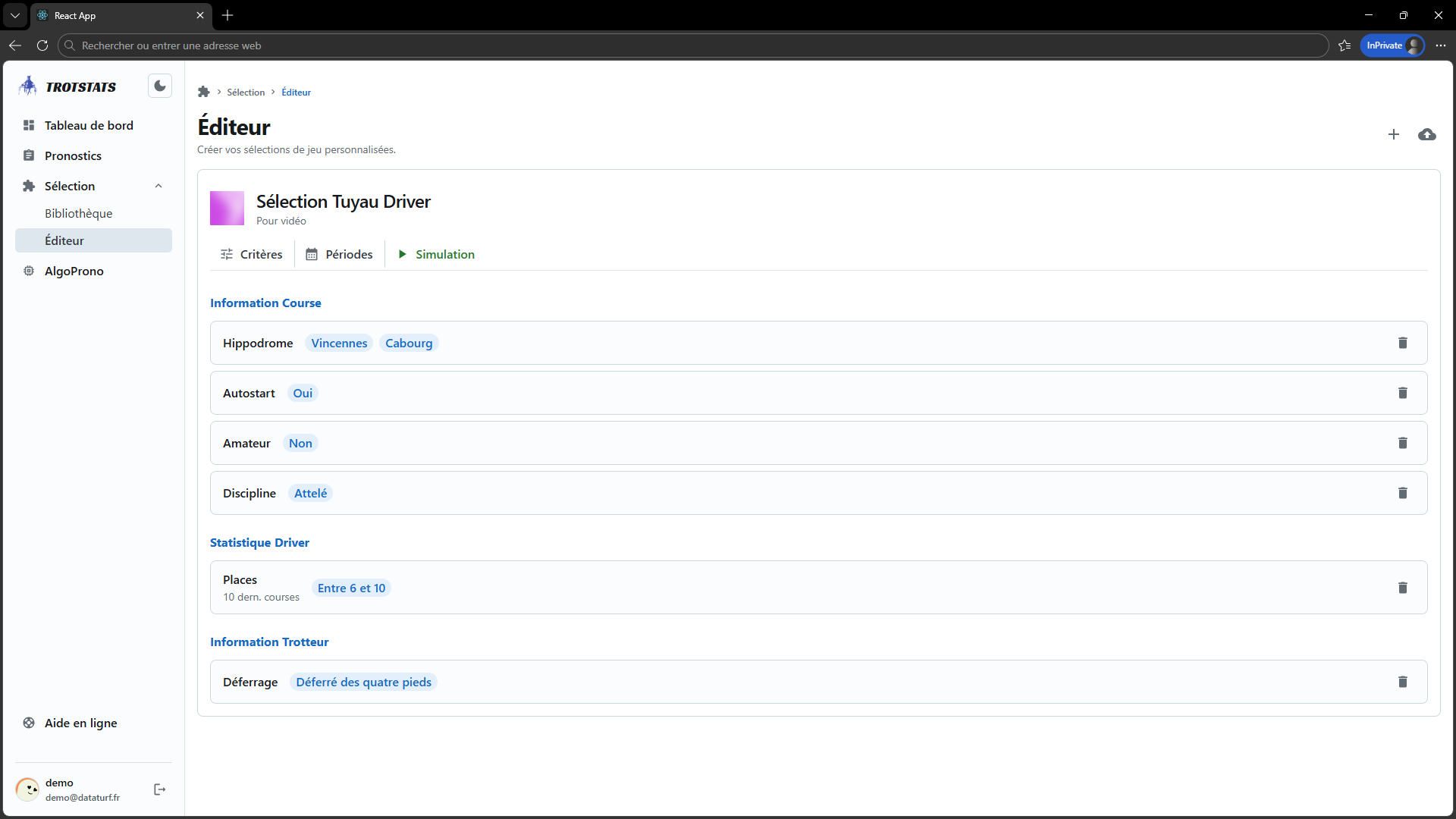 Gagnez du temps ! Avec la fonctionnalité Éditeur, créez rapidement et efficacement vos propres sélections de partants et les conditions de course.