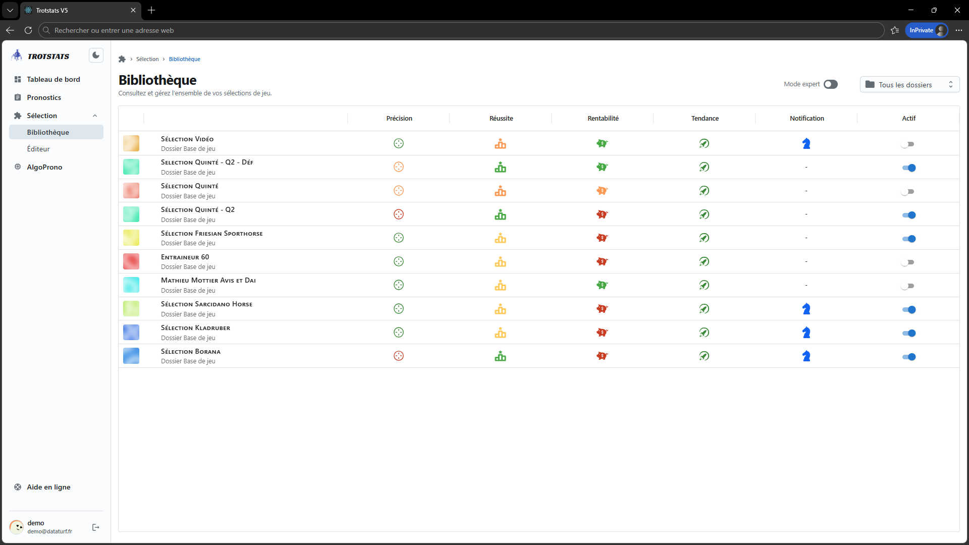 Cet écran vous offre un accès centralisé pour gérer efficacement l'ensemble de votre bibliothèque de pronostics. Grâce à Trotstats, vos pronostics sont mis à jour quotidienne, et les partants du jour sont détectés et notifiés pour vous.