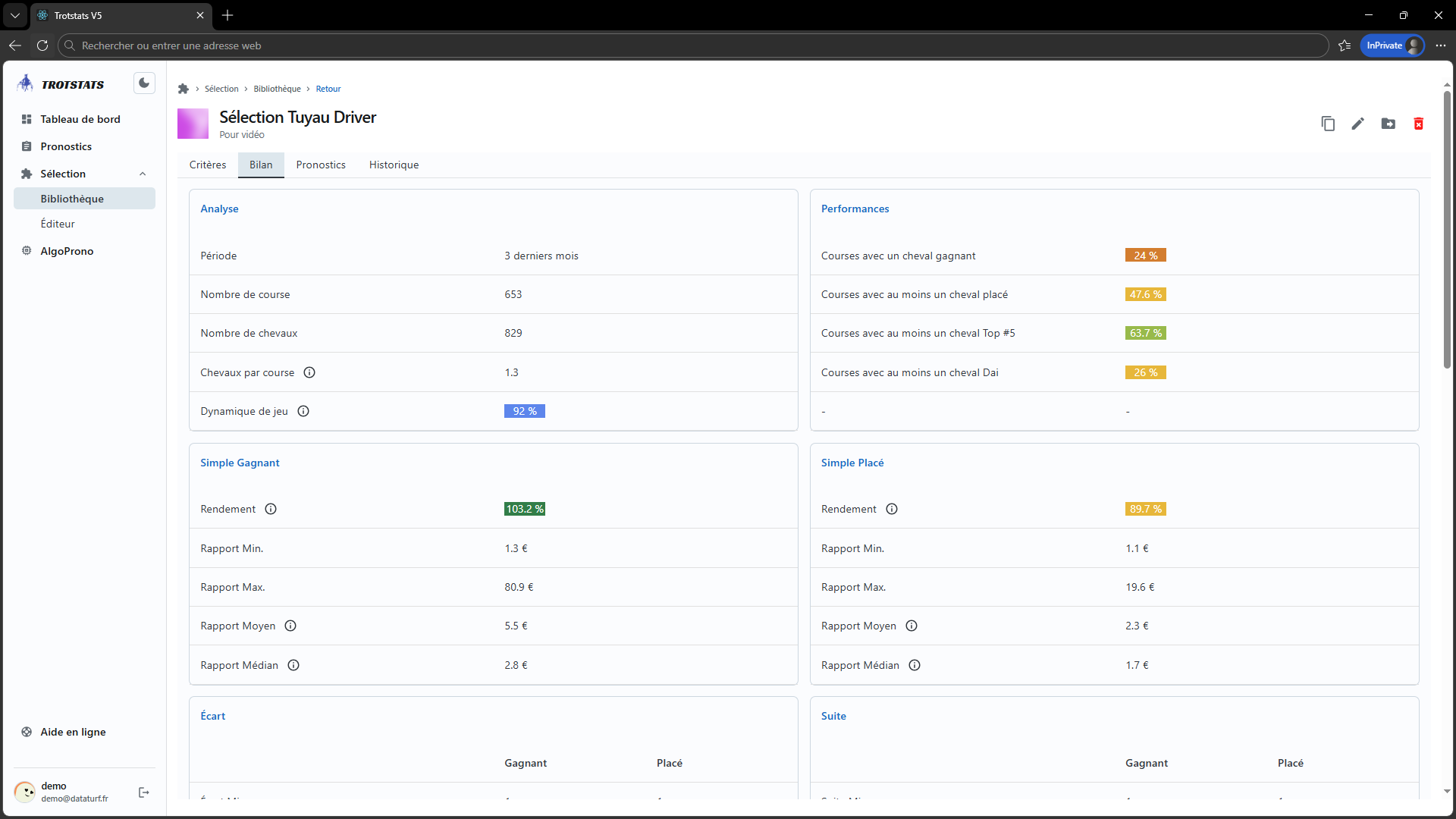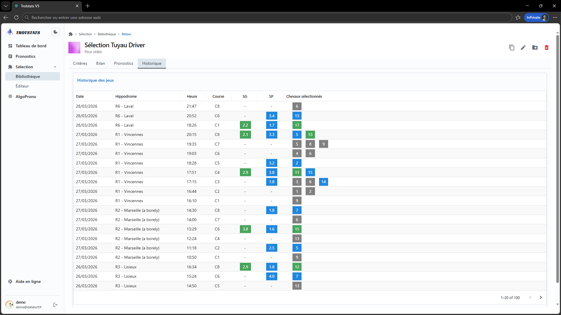 Testez vos intuitions sur les courses passées, y compris le quinté et obtenez un bilan de performance et financier complet.